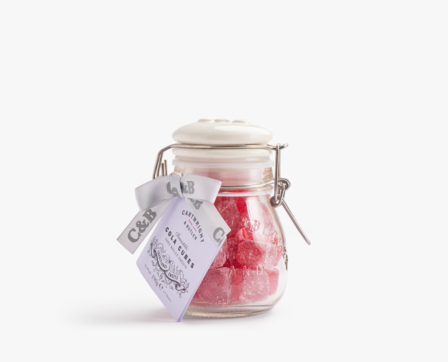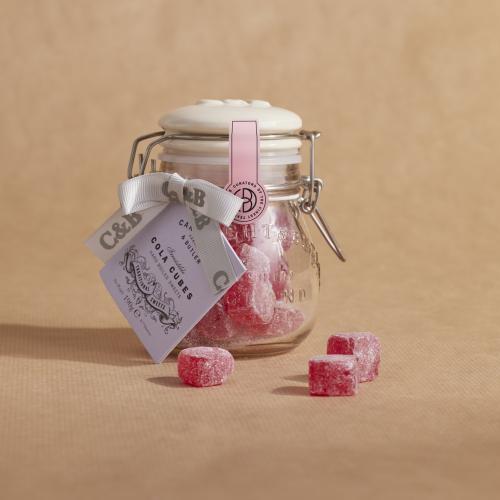Cola Cubes, probably more than any other sweet, sum up the taste of the 70s, and ours are every bit as good as you hoped they would be. Cola-flavored cubes, covered in sugar coating, these are more like an old school friend still wearing flares than simply just another boiled sweet. Presented to you in our signature, ceramic-topped, kilner-style jar.
