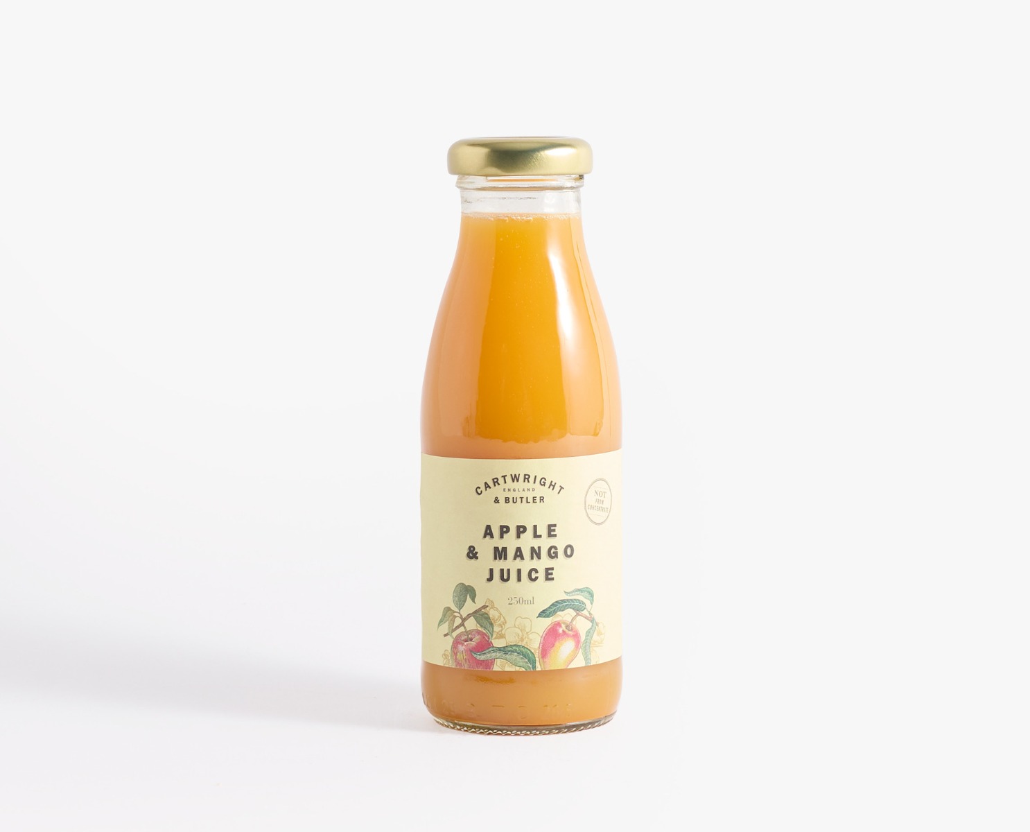 Apple & Mango Juice. This pure natural juice is pressed out of the tastiest varieties of apples and mangoes. The juice is made tenable by pasteurisation, without the use of additives.