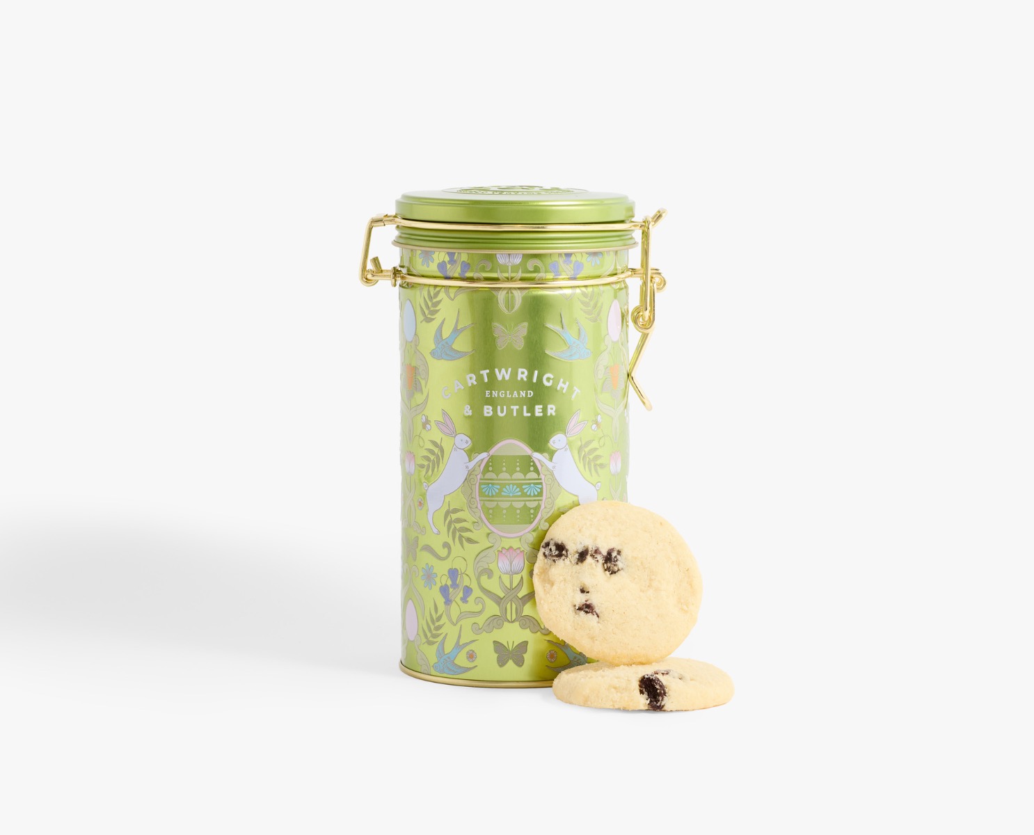 These sweet, crumbly and utterly buttery sultana biscuits are delightfully complemented by a light crisp and zesty taste of lemon. The perfect taste of spring ideal for dunking in hot fragrant tea or with your favourite seasonal tipple. These biscuits are beautifully encased in an Easter tin embossed with rabbits, spring flowers and swallows. Share with your favourite people or keep all to yourself to make the moment last even longer.